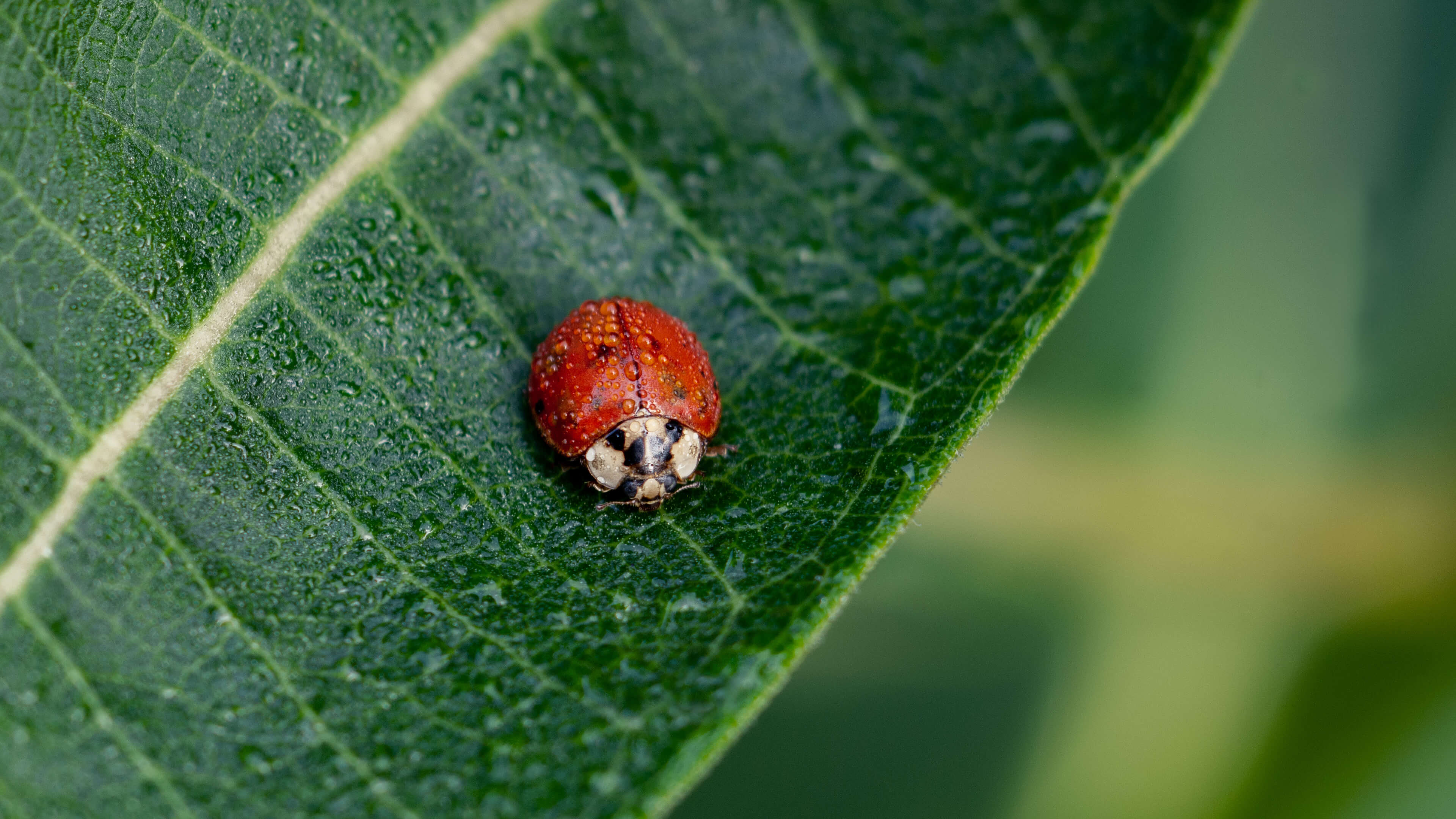 This image was taken during the morning hours, when there was dew on the plants and insects.